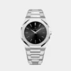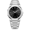 A sleek and sophisticated watch with a minimalist black dial, perfect for the modern gentleman.